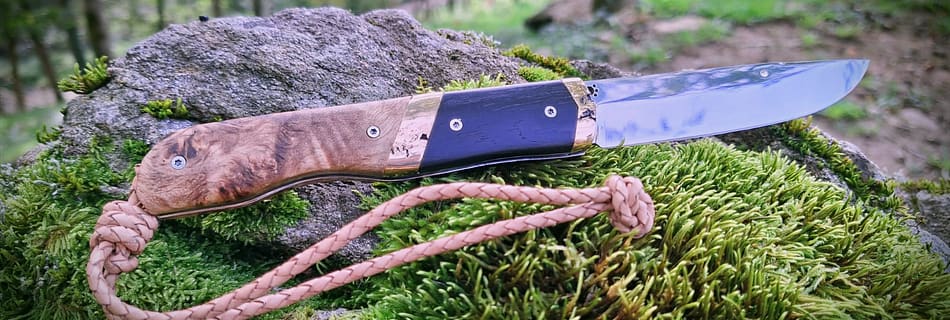 Le Sarry, un couteau pliant avec une lame grand format et double émouture, parfait pour un usage quotidien intensif au jardin ou en forêt ! 920€ Etui cuir sur mesure en option : 65€