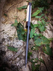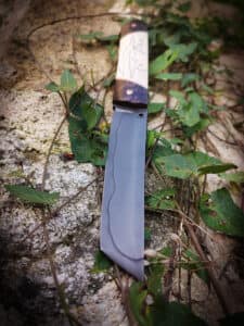 - Lame en Sheffcut, dureté 63HRC. Trempe partielle et ligne de trempe (Hamon).