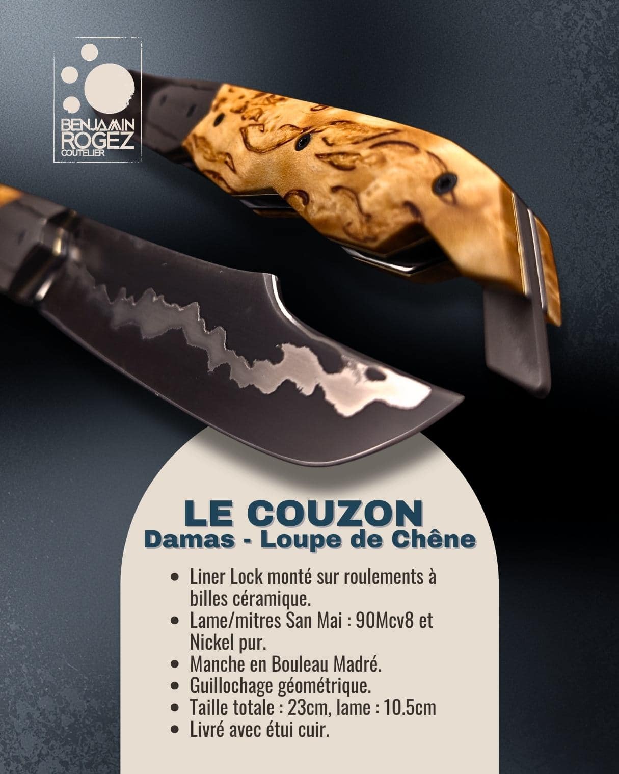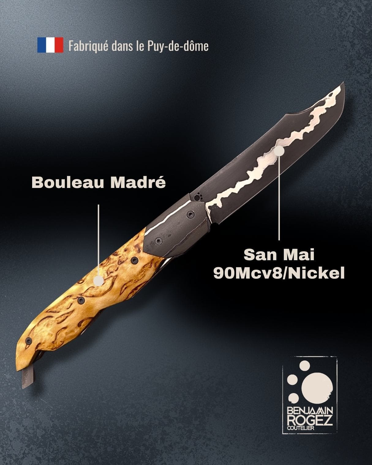 Couteau conçu, forgé et assemblé à l’atelier, 100%artisanal.