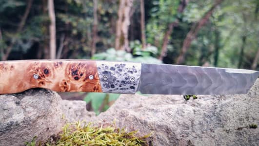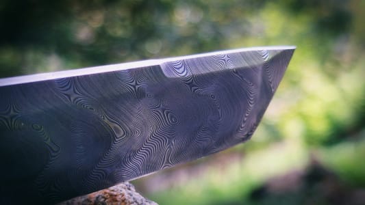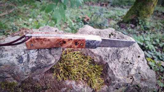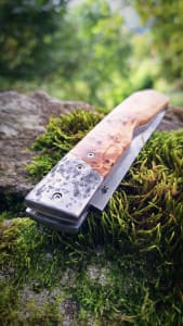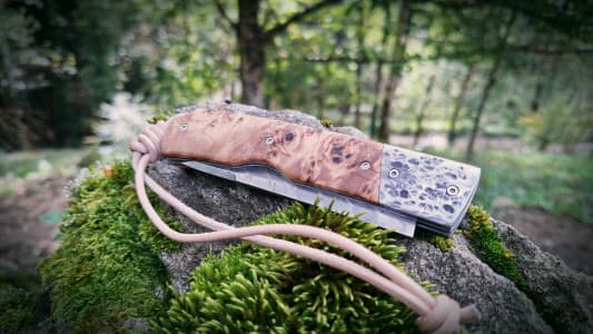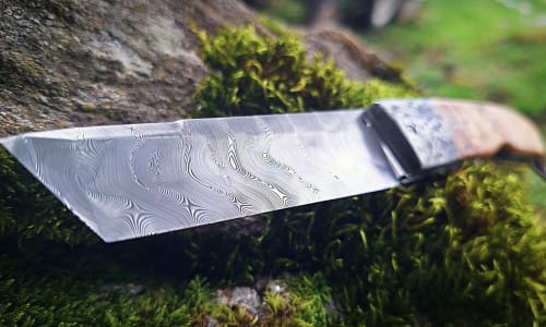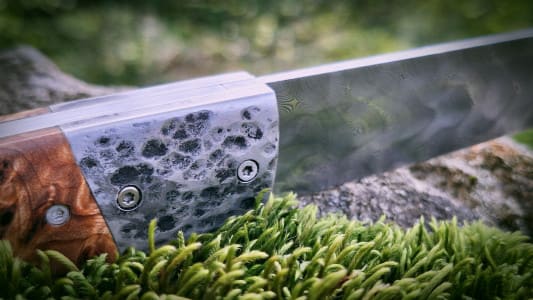 • Lame en damas inox DS93X – acier issu de la métallurgie des poudre, mélange de RWL34 et de PMC27, il confère une excellente dureté et tenue du tranchant avec une résistance à la corrosion élevée
