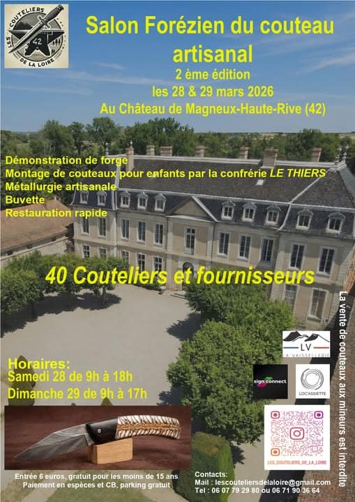 28-29 mars 2026 Chateau de Magneux-Haute-rive31120 Portet-sur-Garonne Site du salon Organisé par Les couteliers de...